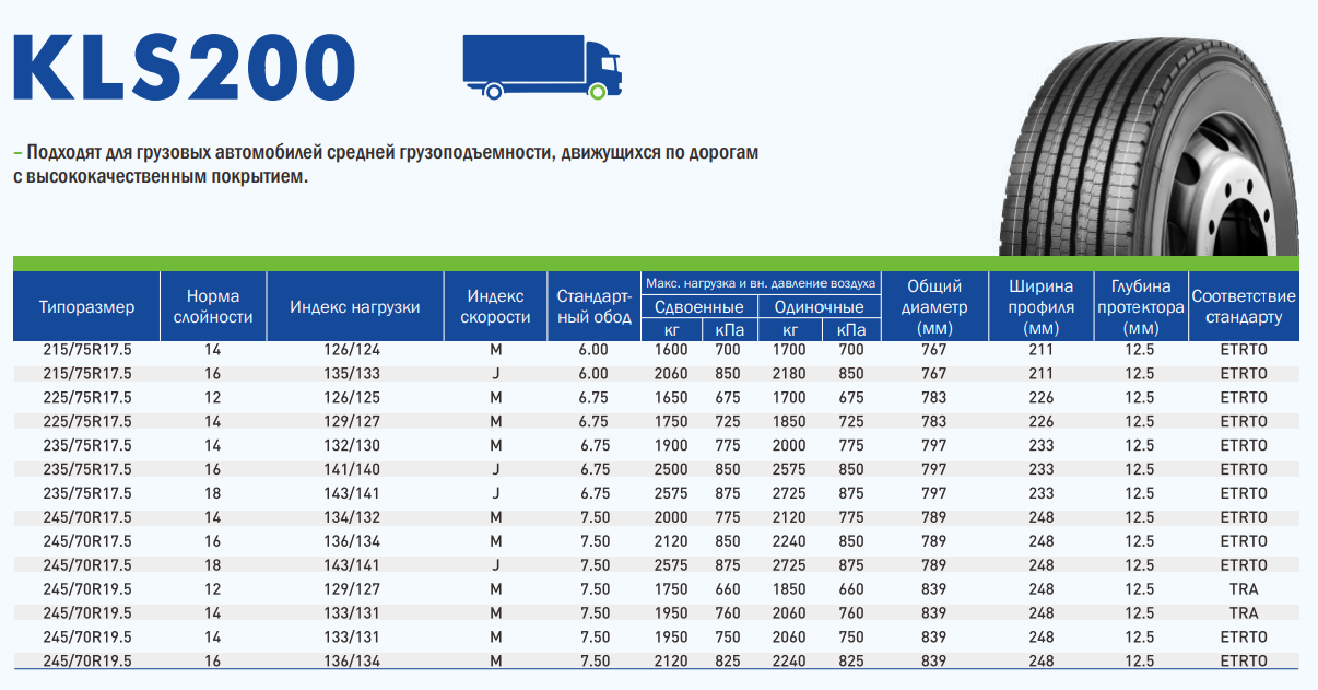 Грузовые шины LingLong 215/75R17.5 KLS200 135/133J 16PR TL