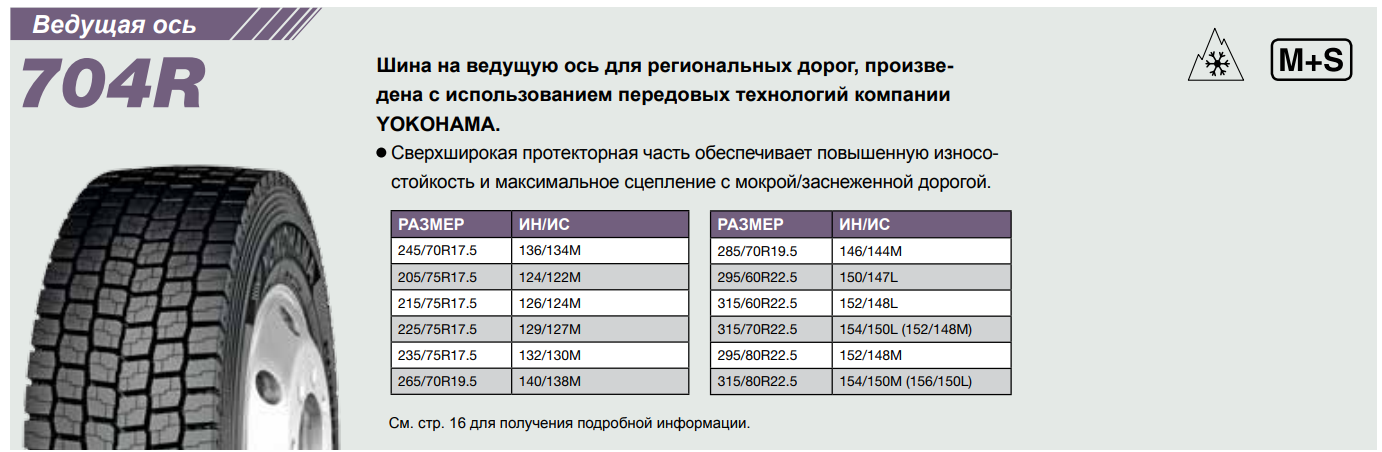 Грузовая шина Yokohama 704R 315/70 R22.5 154/150L, ведущая ось